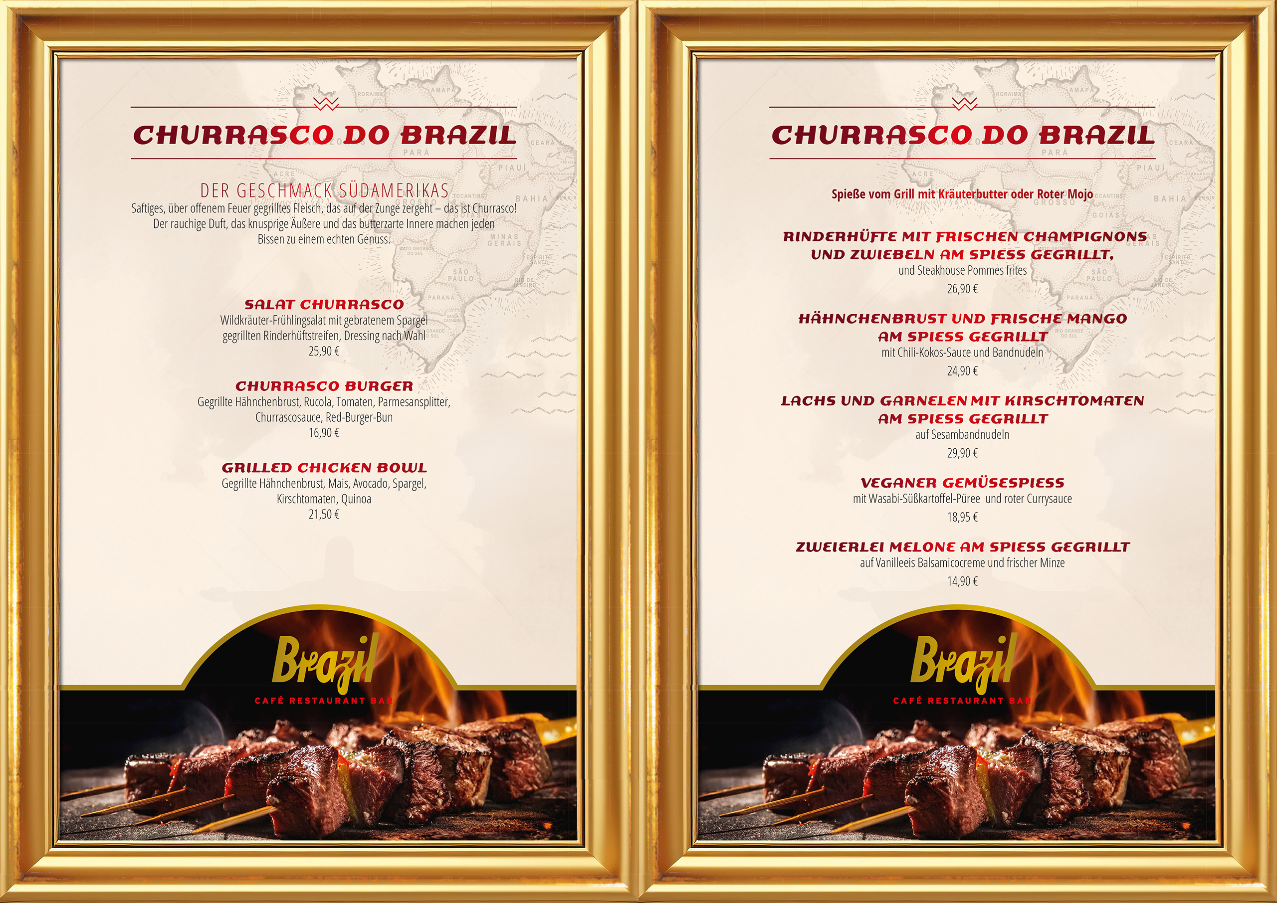 800 Grad für das perfekte Steak. Saftig gegrillte Steaks, Fisch vom Grill, Premium Burger, frische Salate, karibische Desserts und exotische Cocktails. Seit mehr als 15 Jahren gehört das Brazil zu den beliebtesten Gastronomie Locations in der Chemnitzer Innenstadt. Auf drei Etagen und auf unserer großzügigen Sonnenterasse haben Sie immer einen tollen Blick auf die Innenstadt von Chemnitz. Bei der kunstvollen Gestaltung der Inneneinrichtung haben sich Chemnitzer Künstler, wie Klaus Süß und Dagmar Zemke eindrucksvoll verwirklicht. Zu deren Krönung hat Theo Richter einen ausgefallenen Kronleuchter gestaltet.