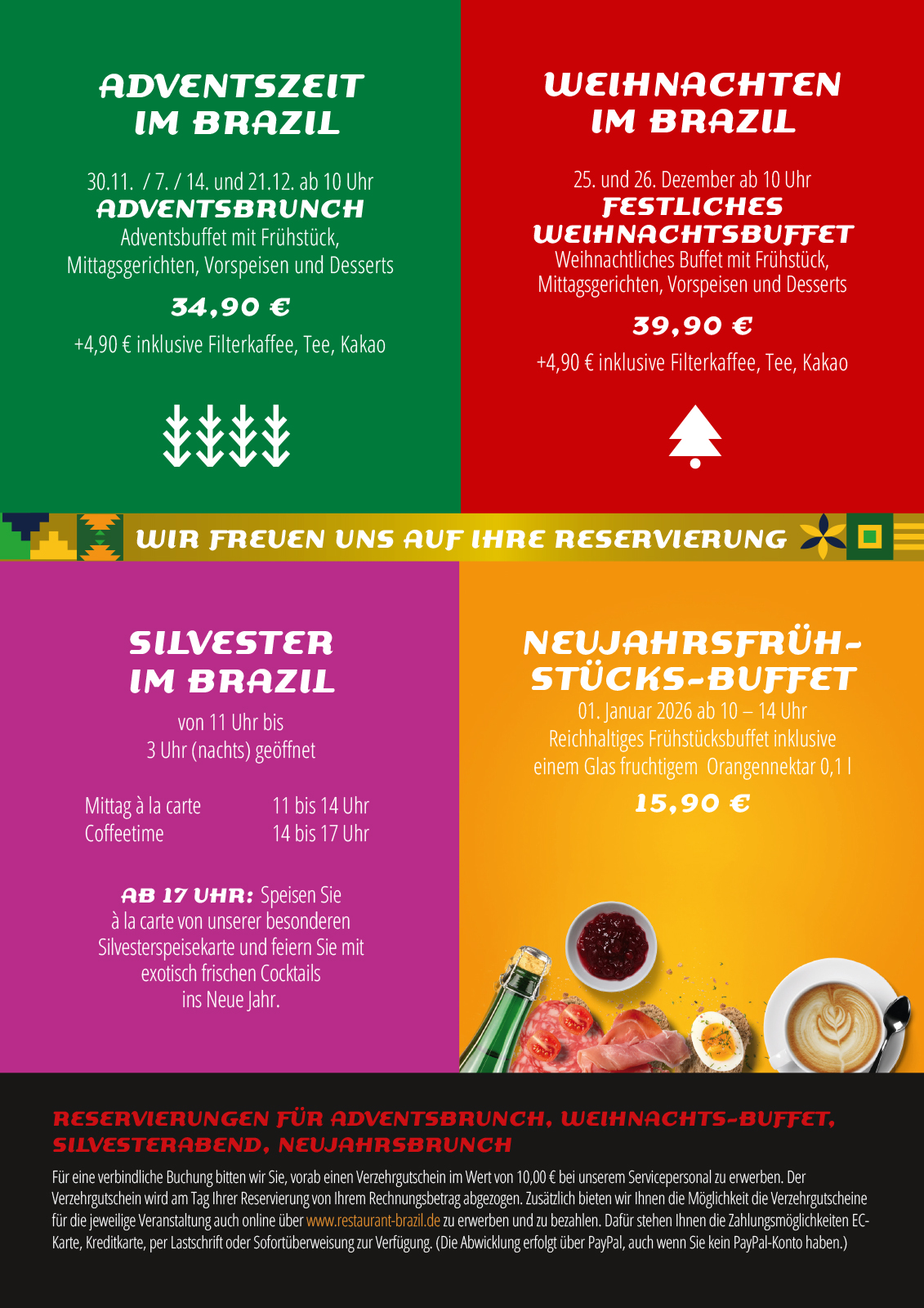 Ein Gutschein für das BRAZIL ist immer eine gute Idee. Gutscheine können Sie in unserem Gutscheinshop bestellen und sich postalisch zusenden lassen oder per E-Mail direkt versenden.